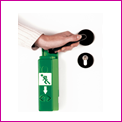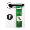 Der Türwächter wird direkt unter dem Türdrücker montiert und blockiert diesen, sodass die Tür nicht ohne Weiteres geöffnet werden kann. Um die Tür zu öffnen, muss der Türwächter zuerst zur Seite oder nach unten bewegt werden – dabei ertönt ein lauter Alarm von bis zu 105 dB, der auf die Benutzung aufmerksam macht und unbefugte Öffnungen verhindert. Im Notfall kann die Tür trotzdem mit einem Handgriff geöffnet werden, da der Türwächter dann automatisch freigegeben wird. Berechtigte Personen wie Hausmeister oder Techniker können den Alarm mit einem Schlüssel abschalten und den Türwächter wieder in die Ausgangsposition bringen. Für längere Durchgänge lässt sich der Türwächter auch dauerhaft freigeben, ohne dass ein Alarm ausgelöst wird. |